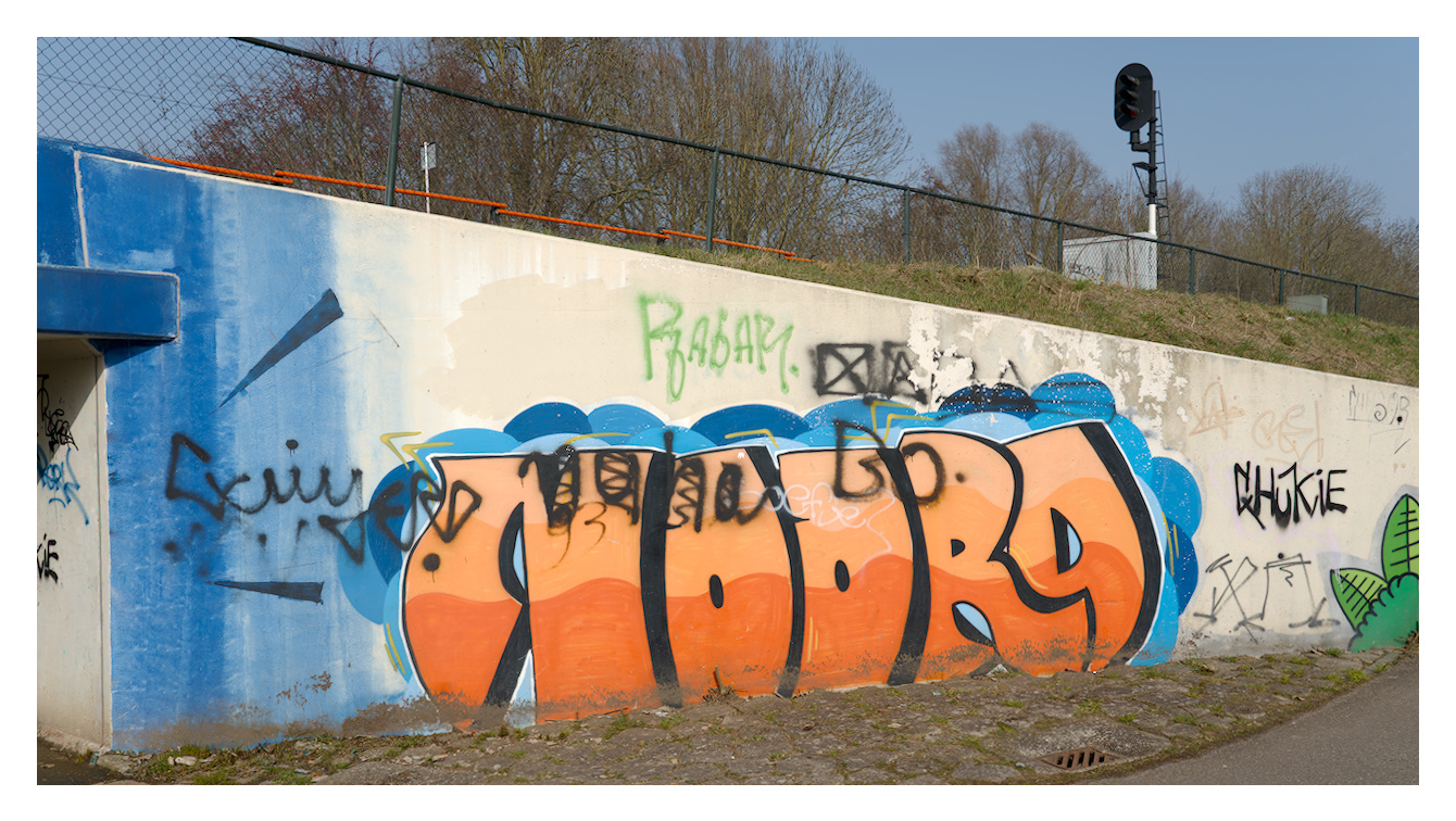 Een paar weken geleden heb ik een wandeling gemaakt langs het fietstunneltje in Delfzijl, onder de Damsterlaan door richting het Koningin Wilhelminapark. Ook daar weer wat graffiti.